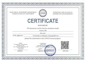 1 | Выполнена хоздоговорная работа на тему «Экспертиза имитационной модели в лицензионной программе ANSYS» (Нуркушева С.А., 2023 г.) |